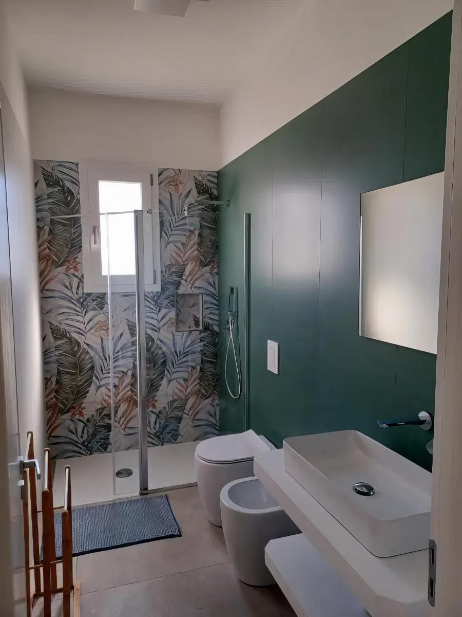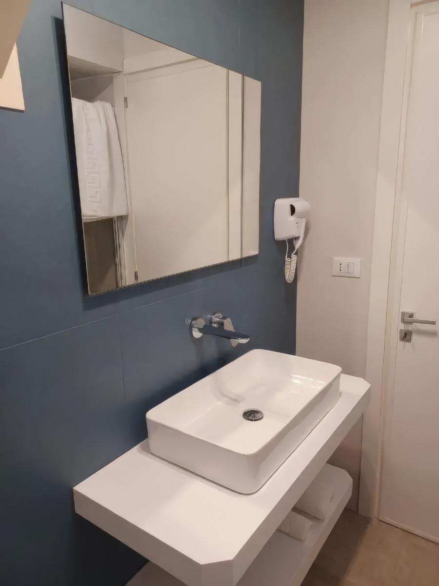 Il bagno è interno alla camera. La Stanza è dotata di tutti i comfort: tv schermo piatto,aria condizionata,zanzariere,frigo,biancheria da bagno,biancheria da letto,armadio,cassetta di sicurezza,prodotti per il bagno,phon.